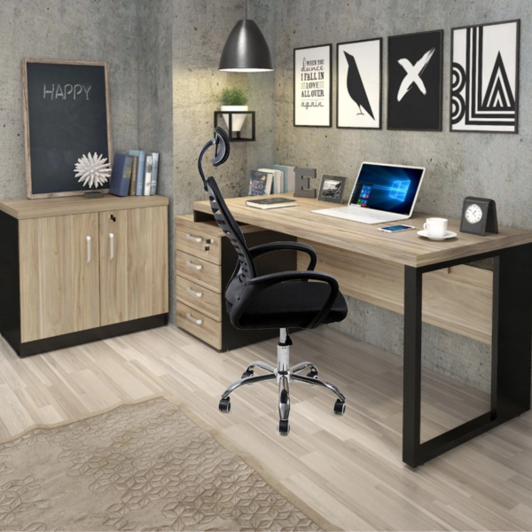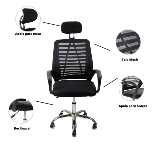 Com design funcional e pensado para longas jornadas de trabalho, a cadeira diretor Oficial Webshop une conforto e ergonomia em um único produto. O apoio para a nuca auxilia na manutenção da postura e alivia a tensão muscular, enquanto os braços almofadados garantem comodidade durante reuniões e tarefas prolongadas. A base giratória com rodízios proporciona movimentação ágil, e a estrutura em metal assegura estabilidade e durabilidade. Ideal para escritórios que valorizam o bem-estar no dia a dia.