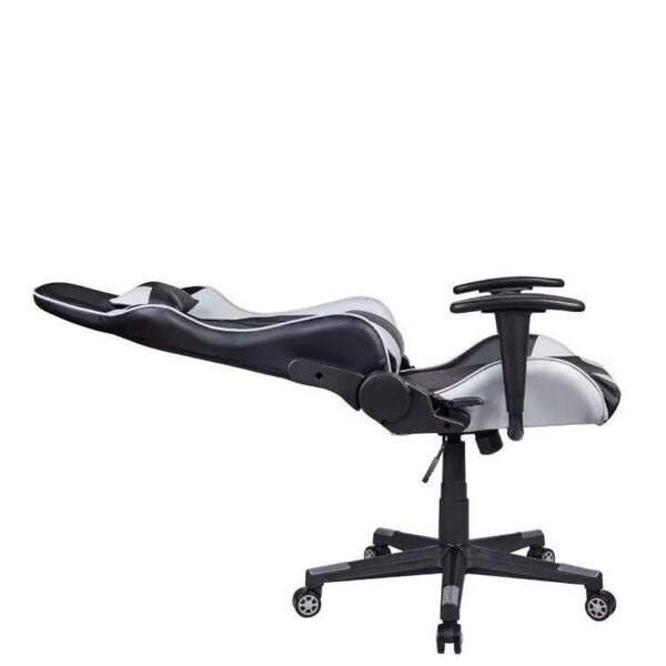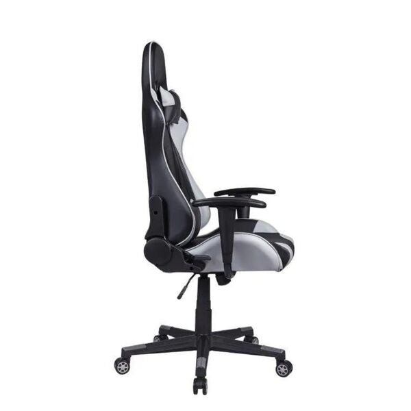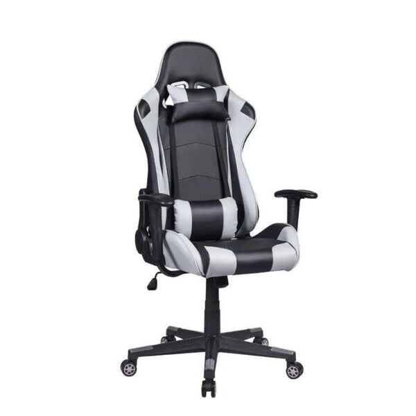 Cadeira Gamer Reclinável em Couro PU Preto e Cinza com Apoio Lombar e Cervical