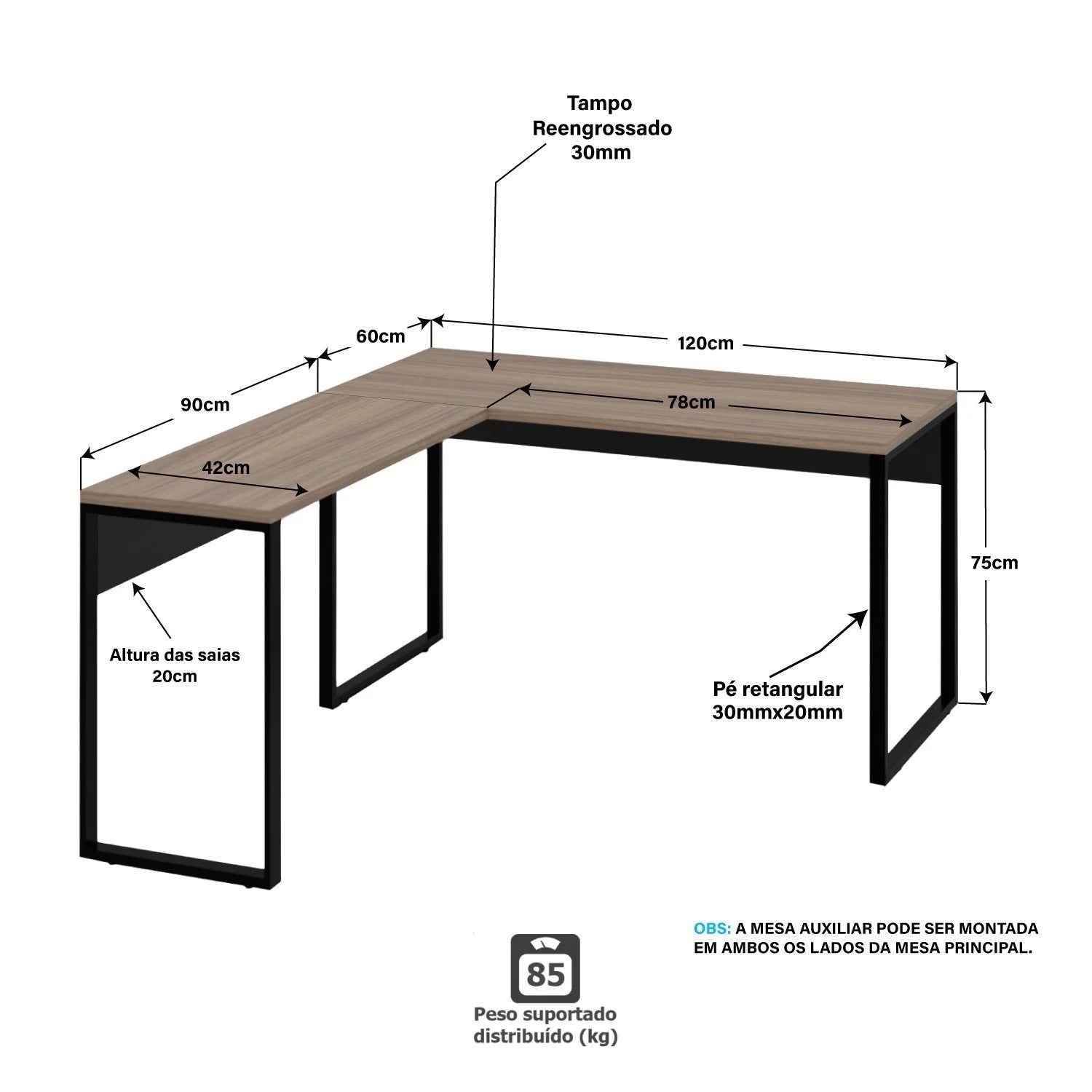 Mesa de Canto em L para Escritório 140x150cm Tampo 30mm