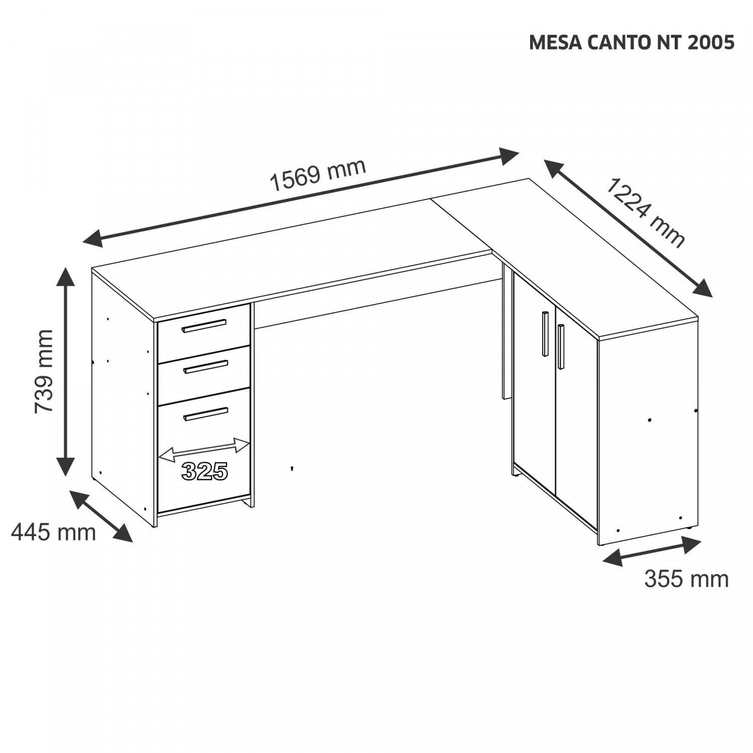 Mesa de Escritório em L 2 Gavetas 3 Portas Office NT 2005