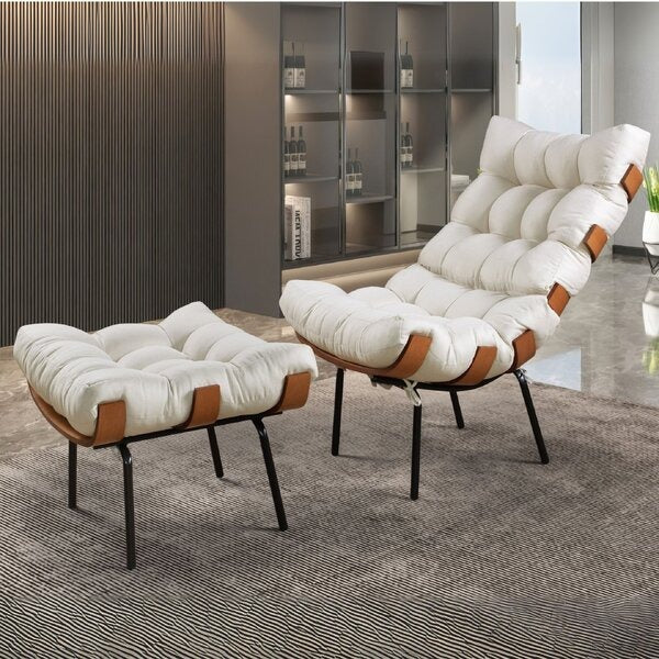 Seu estofamento anatômico em fibra siliconada garante maciez e suporte, enquanto o puff incluso proporciona apoio extra para as pernas, criando uma experiência completa de relaxamento. Fabricada com estrutura resistente em madeira e ferro, revestida em linho bege off white, é perfeita para compor salas de estar, escritórios ou cantos de leitura com estilo e versatilidade.