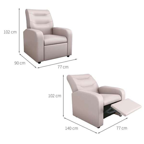 Poltrona Reclinável com Apoio para Pés em Corino – Bege