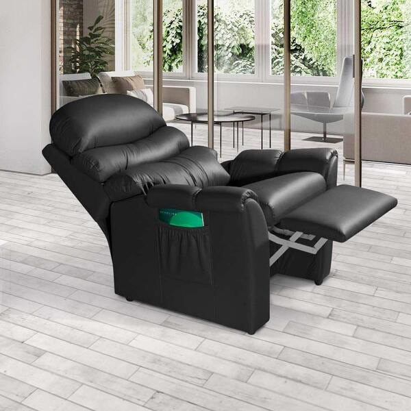 Com estrutura reforçada em madeira e catracas de aço, a poltrona é retrátil e inclinável, oferecendo posições confortáveis para assistir, ler ou descansar. O amplo encosto, o apoio para pés e os braços acolchoados garantem bem-estar em longos períodos de uso.